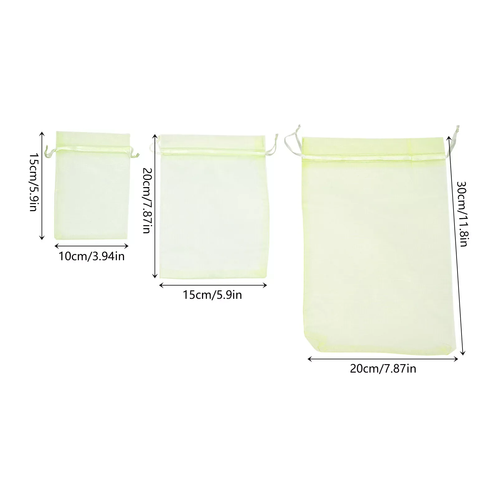 Build to Last: Made of nylon, this product is tear-resistant, wear-resistant, safe to use, non-fading, and soft and stretchy, ensuring your long-term use. 300PCS: Three sizes allow you to choose the appropriate size according to your needs. In addition, 300pcs can meet your usage needs. Thoughtful Design: It has good breathability, forms an ideal environment for fruit growing, as a result, the texture and taste of fruits would be great. The mesh design with the green color tone allows you to observe the growth of the fruit. Highly Practical: It can effectively protect your fruits and vegetables from insects and mosquitoes. It can also be used to store jewelry, earrings, cosmetics, perfume(all are not included), etc., which is highly practical. Ready to Use: This product is shaped in one piece, so you can use it directly without installation. Easy to Carry: Its lightweight allows you to easily carry it wherever you need it, which is effortless Ideal Gift: This practical product can be used as an ideal housewarming, birthday, and holiday gift for parents and friends. Customer Service: We aim to provide quality products and services. If you have any problems, please feel free to contact us. We will reply and solve the problem for you as soon as possible.